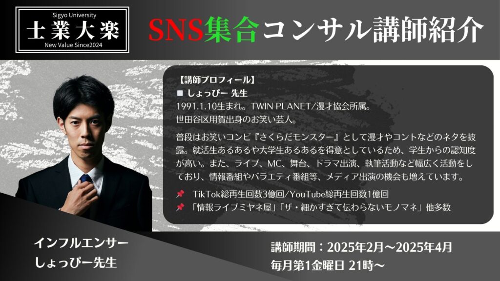 SNS学科では、総フォロワー数100万人を超える現役のインフルエンサーが講師として、皆様の発信内容をチェックし具体的なアドバイスを行い、継続的なサポートをしています。